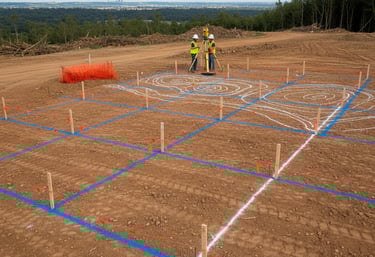 Demarcação de pontos no terreno que permitem mais precisão nos cortes e aterros dos projetos de terraplanagem.